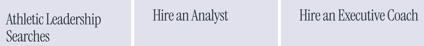 Last year, members of our team successfully completed over 10 athletic leadership searches, and members of our team were the first to successfully offer and complete the “Analyst” service to two different school districts. Our President has also built out an Executive Coaching client roster that includes college basketball coaches, K-12 Superintendents, and CEOs from the private sector; and our team was put together to serve more executives who are looking for this type of coaching.